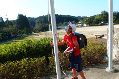 旗の掲揚をしてくれた週番の5年生です。 この写真はタブレットで撮影しています。