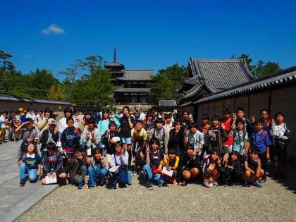 修学旅行の6年生は奈良の法隆寺に到着しました。