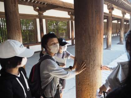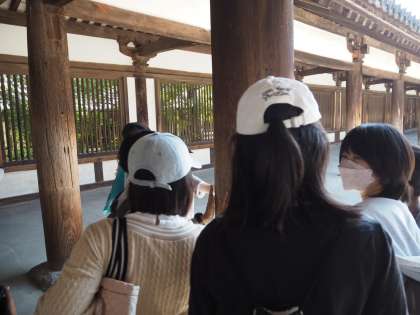 修学旅行の訪問地、奈良の法隆寺での様子です。