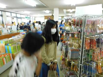 修学旅行1日目の訪問地、奈良でお土産を選んでいる6年生です。