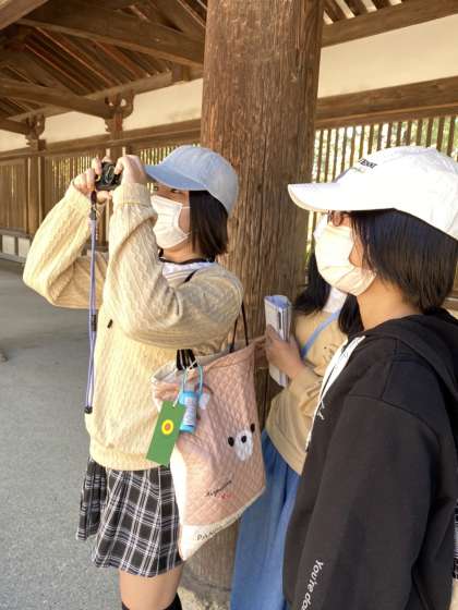 修学旅行の訪問地、奈良の法隆寺での様子です。