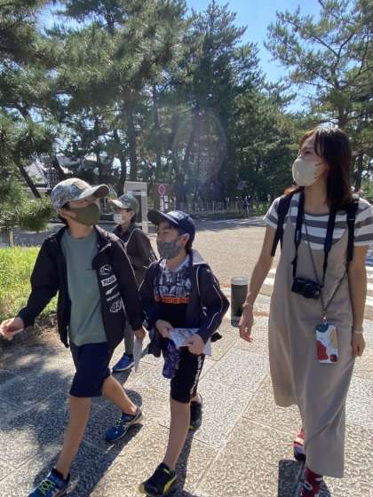 修学旅行の訪問地、奈良の法隆寺での様子です。