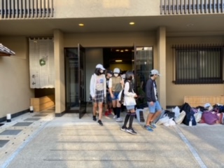 旅館から出発するところです。