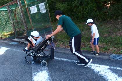 特別支援学級の2人と、学校周辺の探検に出かけました。