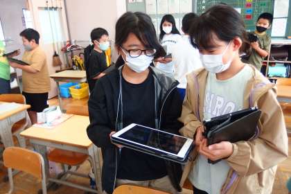 10月3日の東広瀬小学校(22) 公開日 2022/10/04 更新日 2022/10/04 活動の様子 5年生の英語の授業です。 疑問詞Whoと代名詞He/Sheの会話練習をしています。 会話の時に友達と見せ合う会話の素材をタブレット上に事前に準備しておきました。