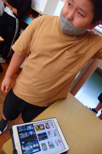 10月3日の東広瀬小学校(24) 公開日 2022/10/04 更新日 2022/10/04 活動の様子 5年生の英語の授業です。 疑問詞Whoと代名詞He/Sheの会話練習をしています。 会話の時に友達と見せ合う会話の素材をタブレット上に事前に準備しておきました。
