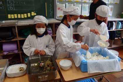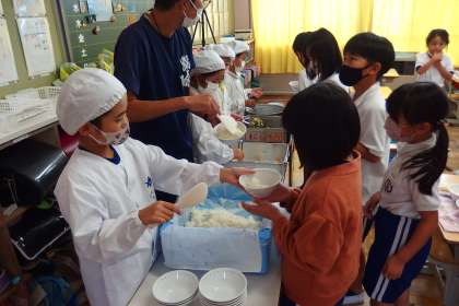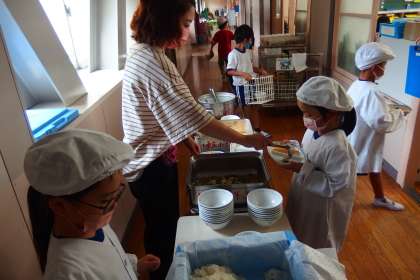 給食の配膳の様子です。 この写真はタブレットで撮影しています。