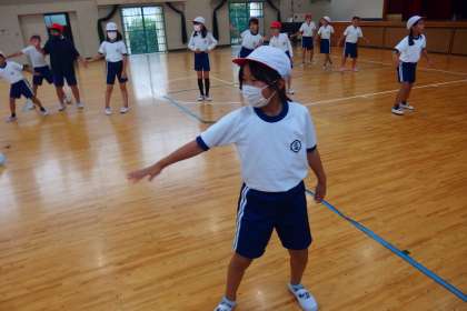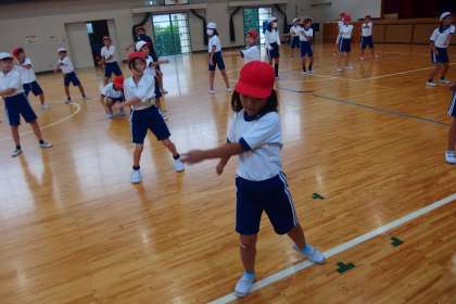 運動会の表現の練習をする3年生、4年生です。