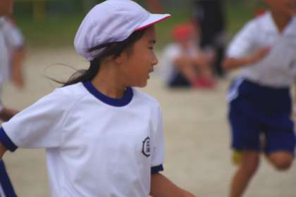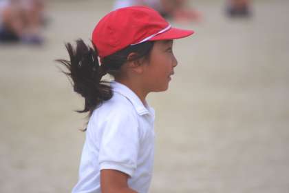 全校練習で行った帽子取りの練習の様子です。