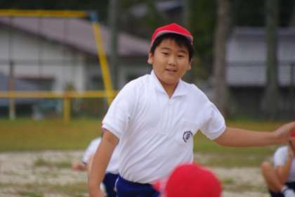 全校練習で行った帽子取りの練習の様子です。