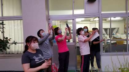 10月5日の東広瀬小学校(45) 公開日 2022/10/05 更新日 2022/10/05 We Love 東広瀬(地域学校共働本部) 美しい虹を写真に収めようとして、東の空に向けてカメラを構える本校の先生方です。