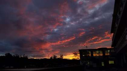 東の空の虹のあとには、西の空に美しい夕焼けが現れました。