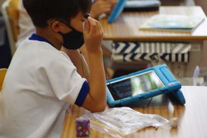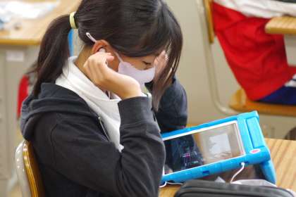タブレットでNHK for Schoolを視聴している4年生です。