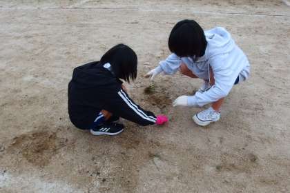 わかばタイムに5年生、6年生が運動場の草取りをしてくれました。