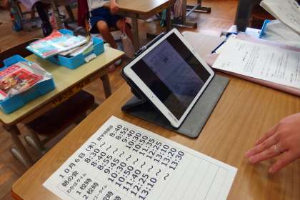 10月6日の東広瀬小学校(33) 公開日 2022/10/07 更新日 2022/10/07 お知らせ 朝の会の担任の先生の手元です。 タブレットを見ながら連絡をしています。 学校教育の現場も、様々な方策で授業や活動の進め方の改革を図っています。 いろいろと試行錯誤中です。