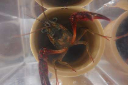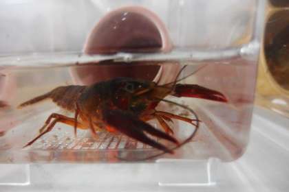 1年生が飼育しているザリガニです。 この写真はタブレットで撮影しています。