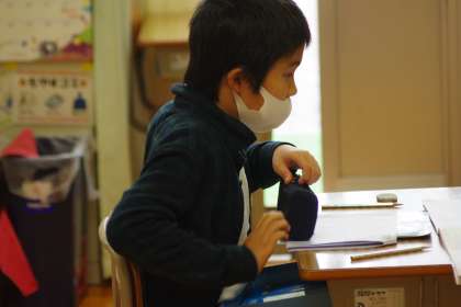 国語の授業を受ける2組の子です。 この写真はデジタルカメラで撮影しています。