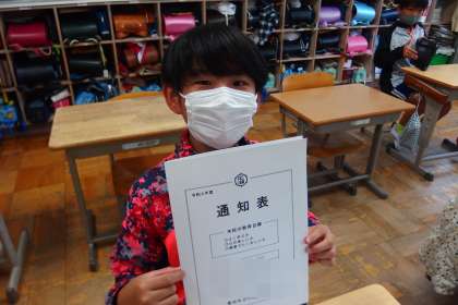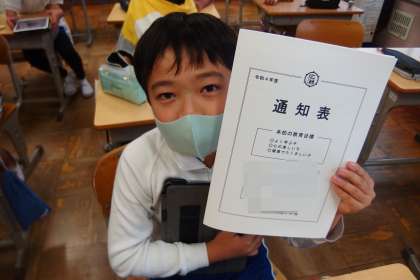 通知表を受け取った5年生。