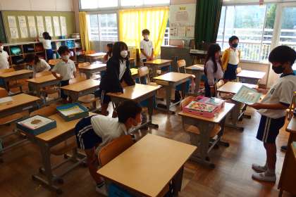 2年生の朝の会の様子です。 この写真はタブレットで撮影しています。