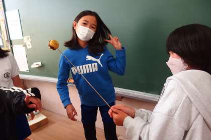 休み時間の5年生。 なぜか6年生の教室にて。 この写真はタブレットで撮影しています。