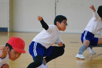 運動会の表現の練習をする5年生と6年生です。 この写真はデジタルカメラで撮影しています。