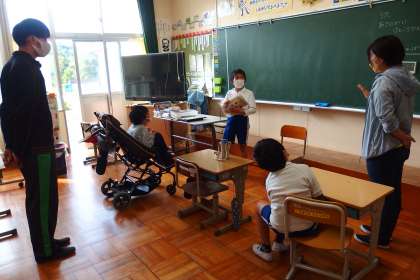 特別支援学級の朝の会の様子です。 この写真はタブレットで撮影しています。