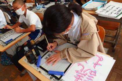 5年生の書写の授業です。 この写真はタブレットで撮影しています。