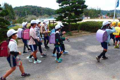 今朝の登校の様子です。 この写真はタブレットで撮影しています。