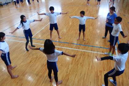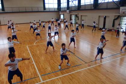 運動会の表現の練習をする5年生と6年生です。 この写真はデジタルカメラで撮影しています。