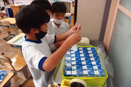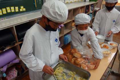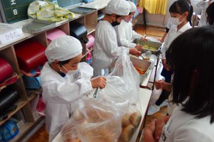 給食の配膳の様子です。