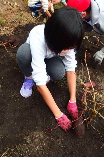 運動会の練習があって時間に制約のある中、みんなで協力してテキパキと掘っていました。