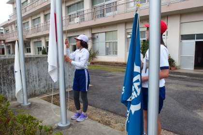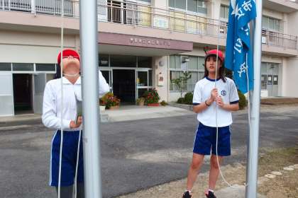10月13日の東広瀬小学校(39) 公開日 2022/10/15 更新日 2022/10/15 活動の様子 運動会の全校練習で開閉会式の練習をしました。 その中で国旗などの掲揚、降納をする6年生です。 この写真はタブレットで撮影しています。