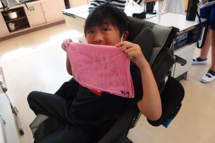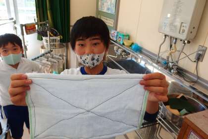 ミシンを使った裁縫の学習で、雑巾を数枚作り上げました。