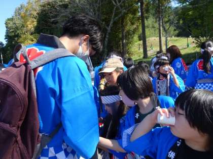 上切自治区 秋葉神社 例大祭 公開日 2022/10/16 更新日 2022/10/16 お知らせ 1時間ほど歩いたころ、東広瀬小の駐車場で休憩に入りました。 ここからは、子どもたちのくつろいだ様子をご覧ください。 暑かったのでかったので、のどもかわいたようです。