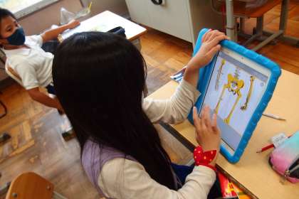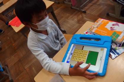 タブレットを使って復習をする2年生です。