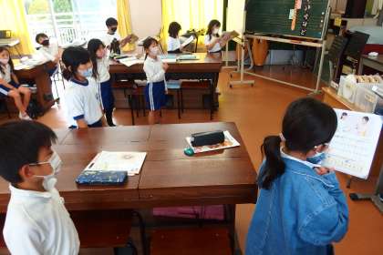 2年生の音楽の授業です。 この写真はタブレットで撮影しています。