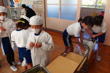 給食の配膳の様子です。 この写真はタブレットで撮影しています。