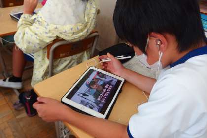 10月20日の東広瀬小学校(30) 公開日 2022/10/21 更新日 2022/10/21 活動の様子 5年生がキャリア教育に取り組んでいる様子です。 「ブルーベリー」提供の教材の学習や動画の視聴を進めています。 写真はタブレットで動画を視聴しているところです。