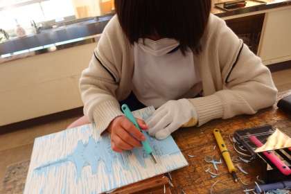修学旅行の思い出を版画にしています。