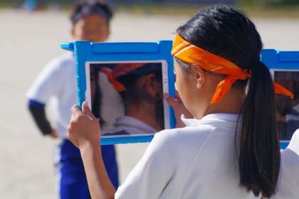 10月21日 運動会練習 公開日 2022/10/21 更新日 2022/10/21 活動の様子 3年生、4年生の表現の練習です。 グループでペアになり、タブレットで振り付けを撮影し合って、よりよい表現を目指しています。