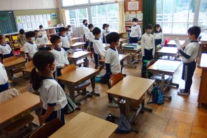 1年生の朝の会の様子です。