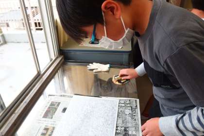 6年生の図工の授業です。 修学旅行の思い出を版画で表現しています。