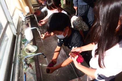 アップしていなかった写真をまとめて更新します。 焼き芋パーティーに向けてサツマイモを洗っています。