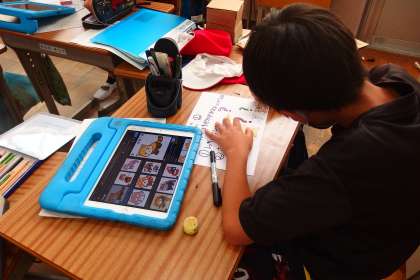 タブレットも活用しながら、てきぱきと作業を進めていました。