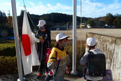 旗の掲揚をしてくれている週番のみなさんです。