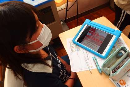 11月2日の東広瀬小学校(46) 公開日 2022/11/04 更新日 2022/11/04 活動の様子 3年生の社会の授業です。 校外学習でスーパーマーケットを訪問します。 そこでどんなことを質問できるか考えています。 タブレットの力も借りて質問を考えています。