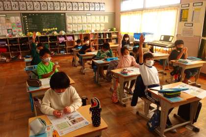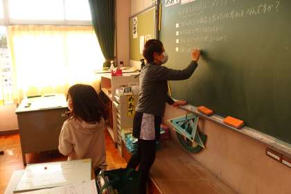 他の子の意見や考えを聞いたり、自分の考えを伝えたりする学び合いの授業です。