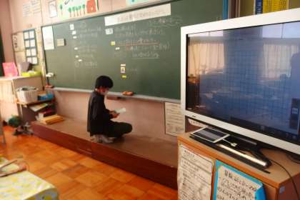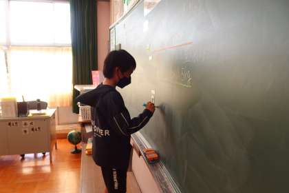 何人かの児童が前に出てきて、黒板に自分の考えを書き、説明をしていました。