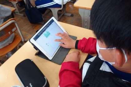 デジタルドリル(Qubena)で復習をしている5年生です。