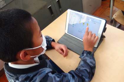 デジタルドリル(Qubena)で復習をしている5年生です。